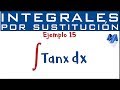 Integrales por sustitución o cambio de variable, explicación de la forma de realizar la integración por sustitución o cambio de variable en este caso con funciones como tangente las que no tienen una respuesta directa sino que hay que hacer uso de las identidades trigonométricas para resolverlas, dentro del curso de Integrales.Integración por sustitución | Ejemplo 15 | Tangente fracciones impropias | |